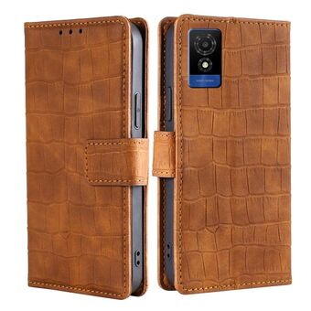 For TCL 503 4G Skin Feel Crocodile Magnetic Clasp Leather Phone Case(Brown)