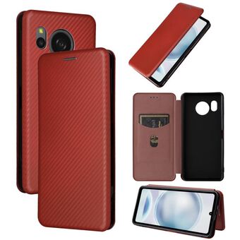For Sharp Aquos Sense8 Carbon Fiber Texture Flip Leather Phone Case(Brown)