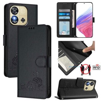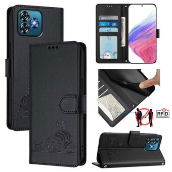 For Oukitel C53 Cat Rat Embossed Pattern RFID Leather Phone Case with Lanyard(Black)
