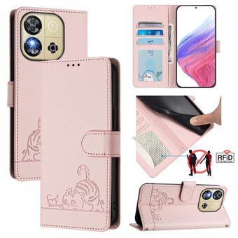For Oukitel C53 Cat Rat Embossed Pattern RFID Leather Phone Case with Lanyard(Pink)