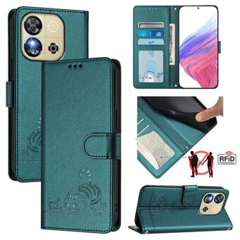 For Oukitel C53 Cat Rat Embossed Pattern RFID Leather Phone Case with Lanyard(Peacock Green)