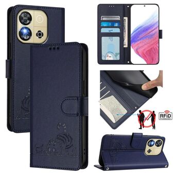 For Oukitel C53 Cat Rat Embossed Pattern RFID Leather Phone Case with Lanyard(Blue)