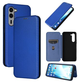 For Fujitsu Arrows F-52E We2 Carbon Fiber Texture Flip Leather Phone Case(Blue)