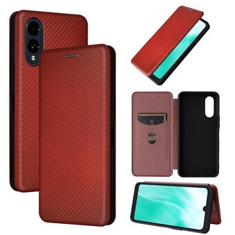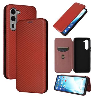For Fujitsu Arrows F-52E We2 Carbon Fiber Texture Flip Leather Phone Case(Brown)
