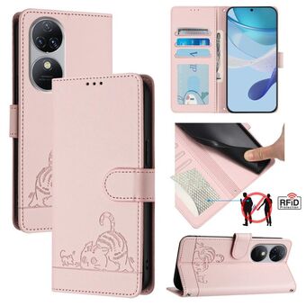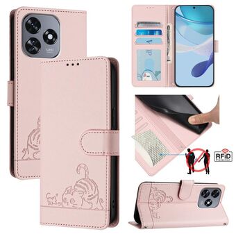 For Oukitel C51 Cat Rat Embossed Pattern RFID Leather Phone Case with Lanyard(Pink)