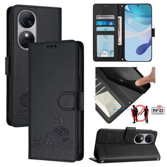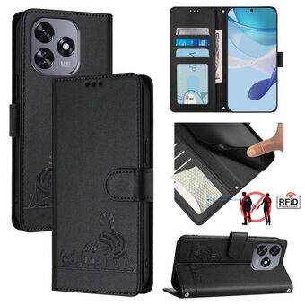 For Oukitel C51 Cat Rat Embossed Pattern RFID Leather Phone Case with Lanyard(Black)