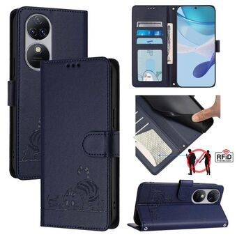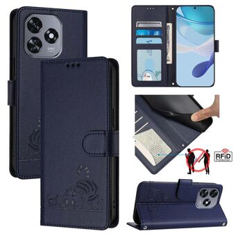 For Oukitel C51 Cat Rat Embossed Pattern RFID Leather Phone Case with Lanyard(Blue)