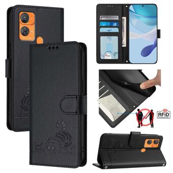 For Oukitel C32 Cat Rat Embossed Pattern RFID Leather Phone Case with Lanyard(Black)