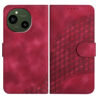 For Sharp Aquos wish5 Elephant Head Embossed Phone Leather Case with Lanyard(Red)