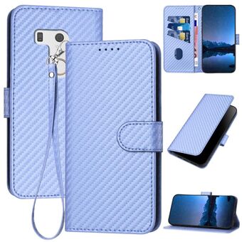 For Fujitsu Arrows WE F-51B YX0070 Carbon Fiber Buckle Leather Phone Case with Lanyard(Black)