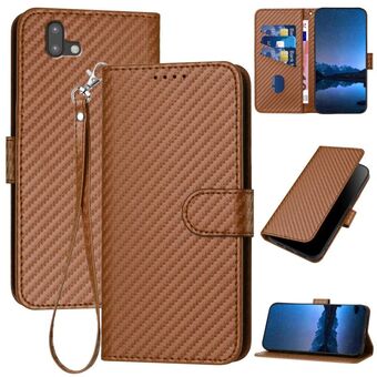 For Fujitsu Arrows WE F-51B YX0070 Carbon Fiber Buckle Leather Phone Case with Lanyard(Coffee)
