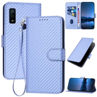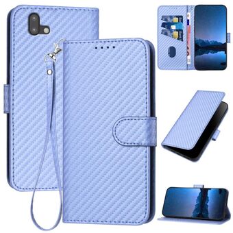 For Fujitsu Arrows WE F-51B YX0070 Carbon Fiber Buckle Leather Phone Case with Lanyard(Light Purple)