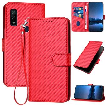 For Fujitsu Arrows WE F-51B YX0070 Carbon Fiber Buckle Leather Phone Case with Lanyard(Red)