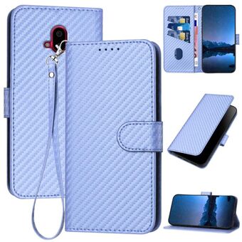 For Fujitsu Arrows F-52B YX0070 Carbon Fiber Buckle Leather Phone Case with Lanyard(Light Purple)