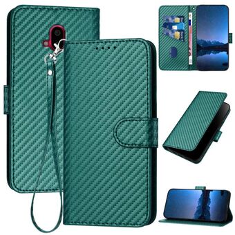 For Fujitsu Arrows F-52B YX0070 Carbon Fiber Buckle Leather Phone Case with Lanyard(Dark Green)
