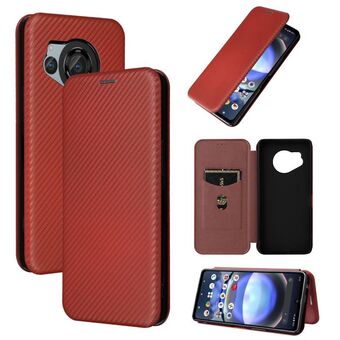 For Sharp Aquos Wish 3 Carbon Fiber Texture Flip Leather Phone Case(Brown)