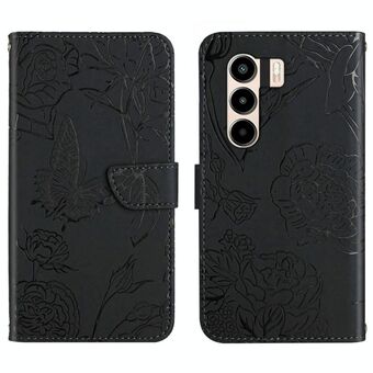 For itel Power 70 Skin Feel Butterfly Embossed Flip Leather Phone Case(Black)
