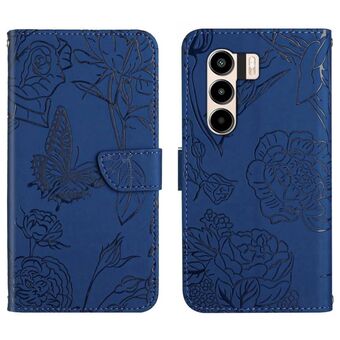 For itel Power 70 Skin Feel Butterfly Embossed Flip Leather Phone Case(Blue)