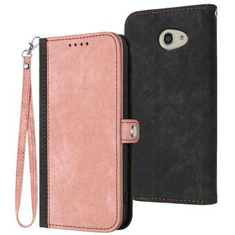 Θήκη τηλεφώνου από δέρμα για Kyocera Basio 3 με πλευρική αγκράφα, διπλή αναδίπλωση και λουρί χειρός (Βασιλικό Μπλε)