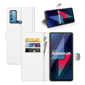 Θήκη προστασίας οριζόντιας αναδίπλωσης για Wiko Power U30 με υφή Litchi, με βάση στήριξης & θήκες καρτών & πορτοφόλι (Μαύρο)