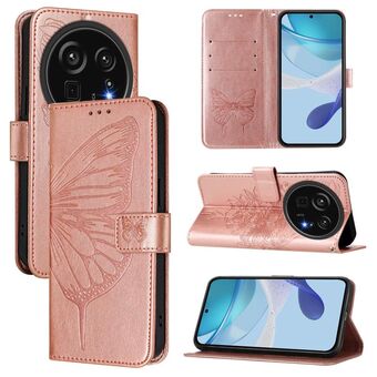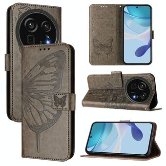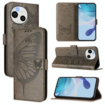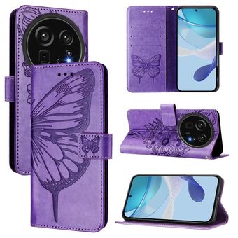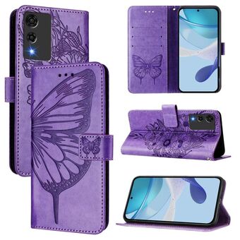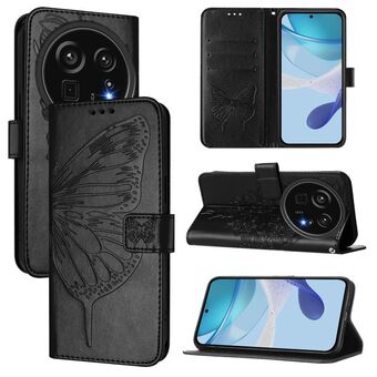 Θήκη τηλεφώνου από δέρμα με ανάγλυφο σχέδιο πεταλούδας για Sharp Aquos R9 Pro / SH-54E (Μαύρο)