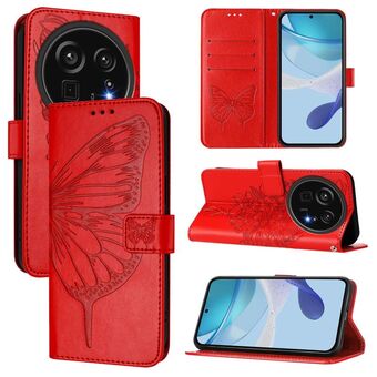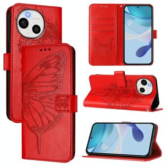 Θήκη τηλεφώνου από δέρμα με ανάγλυφο σχέδιο πεταλούδας για Sharp Aquos Sense9 Plus (Κόκκινο)