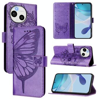 Θήκη τηλεφώνου από δέρμα με ανάγλυφο σχέδιο πεταλούδας για Sharp Aquos Sense9 (Μαύρο)