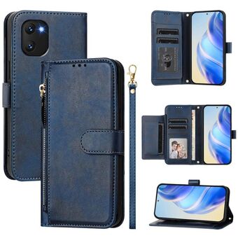 Θήκη τηλεφώνου από δέρμα με φερμουάρ και πολλαπλές θήκες καρτών για Umidigi A15 / A15C / A15T (Μαύρο)