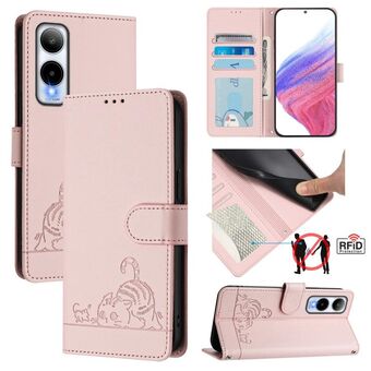 Θήκη τηλεφώνου από δέρμα με ανάγλυφο σχέδιο Γρύλου, Αίλου, 6, Γάτας, Ποντικιού με προστασία RFID και κορδόνι (Ροζ)