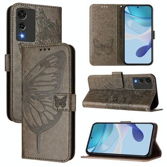 Θήκη τηλεφώνου από δέρμα με ανάγλυφο σχέδιο πεταλούδας σε πλέγμα για Itel S25 Ultra με κορδόνι (Καφέ)
