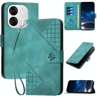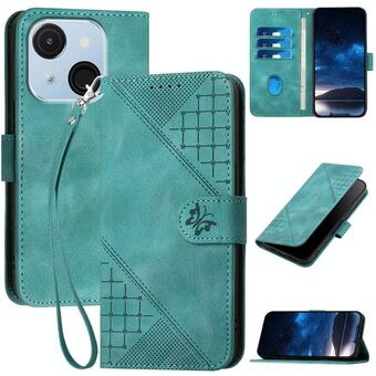 Θήκη τηλεφώνου από δέρμα με ανάγλυφο σχέδιο πλέγματος πεταλούδας για Itel A80 με κορδόνι (Καφέ)