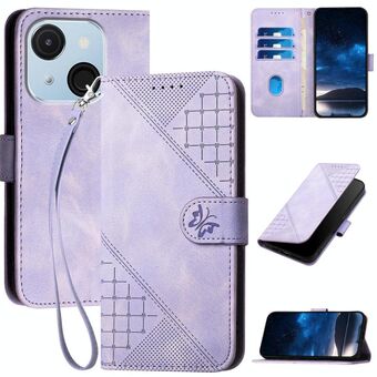 Θήκη τηλεφώνου από δέρμα με ανάγλυφο σχέδιο πλέγματος και πεταλούδας για Itel A48 με κορδόνι (Καφέ)