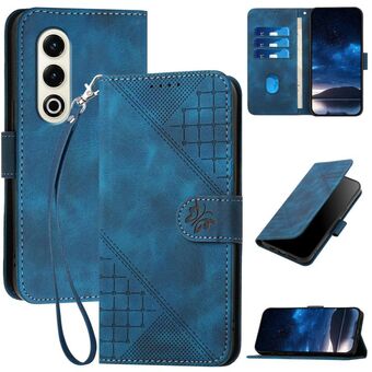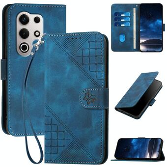 Θήκη τηλεφώνου από δέρμα με ανάγλυφο σχέδιο πλέγματος πεταλούδας για Itel S25 Ultra με κορδόνι (Σκούρο Μπλε)