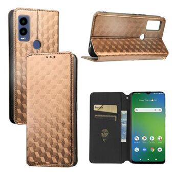 Θήκη τηλεφώνου Cricket Innovate E 5G 2022 με υφή κυβικού πλέγματος, δερμάτινη, αναδιπλούμενη (Μαύρο)