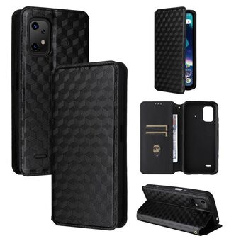 Θήκη τηλεφώνου από δέρμα με ανάγλυφο κυβικό πλέγμα για Umidigi A15 / A15C / A15T (Μαύρο)