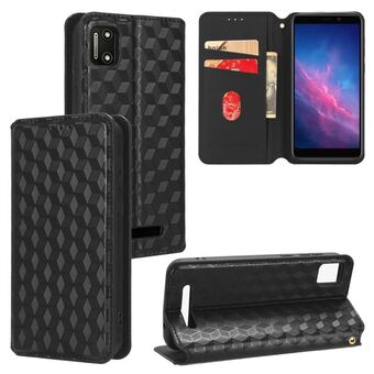 Θήκη τηλεφώνου από δέρμα με υφή κυβικού πλέγματος, αναδιπλούμενη, για Cricket Debut Smart (Μαύρο)