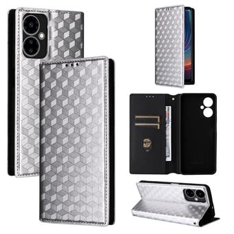 Θήκη τηλεφώνου από δέρμα με ανάγλυφο σχέδιο κυβικού πλέγματος για HMD Pulse / Pulse+ / Pulse Pro (Μαύρο)
