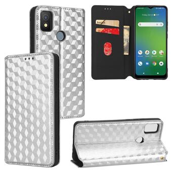 Θήκη τηλεφώνου από δέρμα με υφή Cubic Grid για Boost Mobile Celero 5G 2024 / Celero 3 5G (Μαύρο)