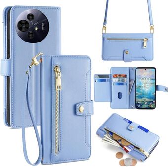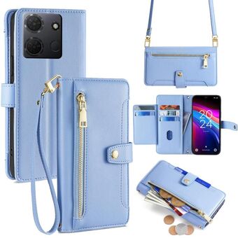 Θήκη κινητού τηλεφώνου TCL 503 4G Crossbody από δέρμα με υφή λύτσι (Μπλε)