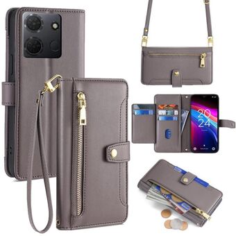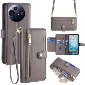 Θήκη τηλεφώνου δερμάτινη με φερμουάρ και υφή προβάτου για TCL 50 NxtPaper 5G (Μαύρο)