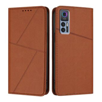 For TCL 30 5G / TCL 30+ Strong Magnetic Frosted Flip Leather Phone Case(Coffee Color)