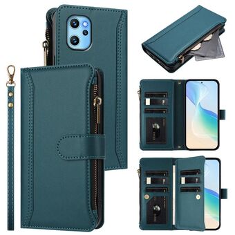 For Umidigi Note 100 Magnetic Closure 9 Card Slots Zipper Leather Case with Hand Strap(Mint Green)