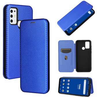 For Tone e21 Carbon Fiber Texture Horizontal Flip TPU + PC + PU Leather Case with Card Slot(Blue)