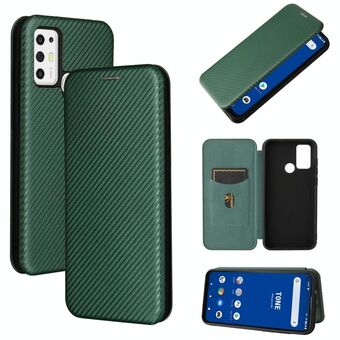 For Tone e21 Carbon Fiber Texture Horizontal Flip TPU + PC + PU Leather Case with Card Slot(Green)