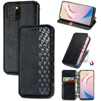 For OUKITEL C21 Pro Cubic Grid Pressed Horizontal Flip Magnetic PU Leather Case with Holder & Card Slots & Wallet(Black)