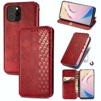 For OUKITEL C21 Pro Cubic Grid Pressed Horizontal Flip Magnetic PU Leather Case with Holder & Card Slots & Wallet(Red)