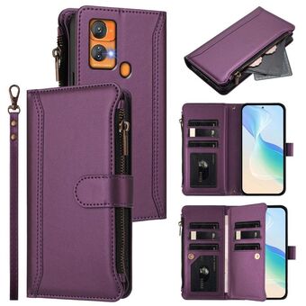 For Oukitel C35 Magnetic Closure 9 Card Slots Zipper Leather Case with Hand Strap(Purple)