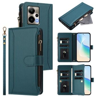 For Cricket Magic 2 5G Magnetic Closure 9 Card Slots Zipper Leather Case with Hand Strap(Turquoise)