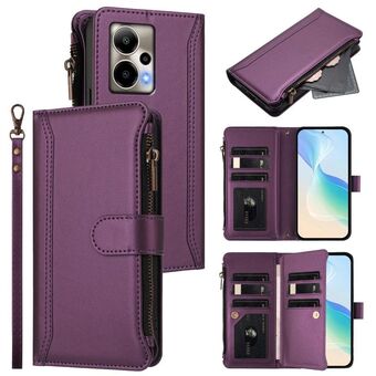 For Cricket Magic 2 5G Magnetic Closure 9 Card Slots Zipper Leather Case with Hand Strap(Purple)