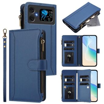 For Cubot A30 Magnetic Closure 9 Card Slots Zipper Leather Case with Hand Strap(Dark Blue)